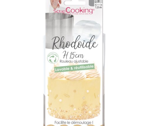 Scrapcooking acetatna folija za večkratno uporabo, za oblikovanje izredno visokih sladic in zagotavlja enostavno odstranitev iz pekačev in okvirjev.