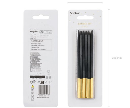 Dodajte kanček elegance vsaki torti s svečkami PartyDeco v črno/zlati barvi