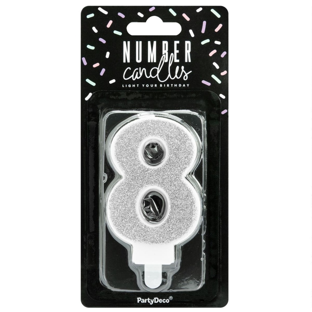 Te srebrne rojstnodnevne svečke v obliki številk od 0 - 9, znamke PartyDeco, so kot nalašč za vaše rojstnodnevne torte.