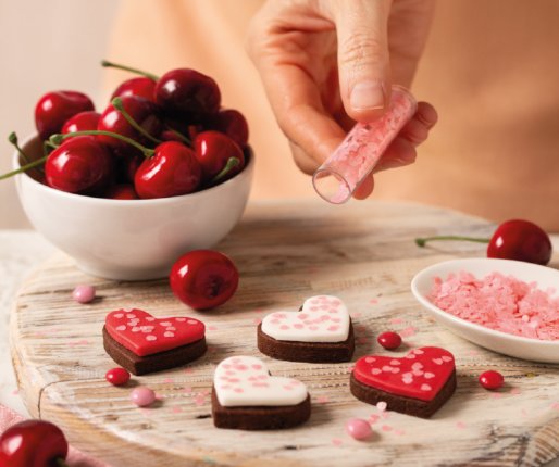 Jedilni okraski, popolni za enostavno okraševanje slaščic, kolačkov, piškotov in čokolad. Popoln tudi za okrasitev pijač in koktajlov.