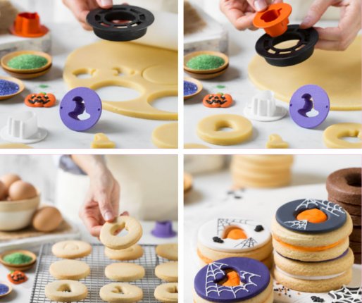 Klasični piškot postane z izsekovalci - modelčki "bull's eye" bolj zabaven , zanimiv, zelo lep in idealen za ustvarjanje piškotov na temo helloweena - noč čarovnic.
