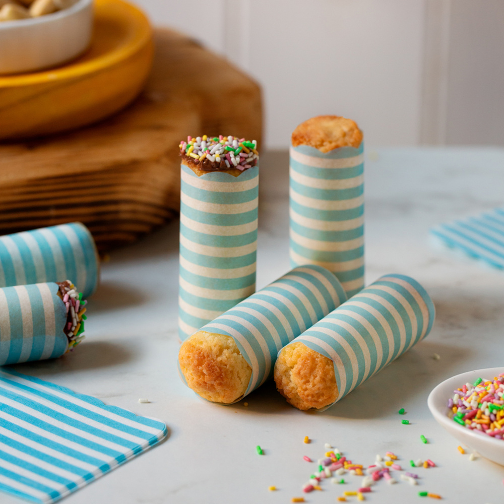 Papirčki iz papirja za peko na modre črtice, z valovitim robom, popolni za klasične italijanske cartucce “CARTU”.