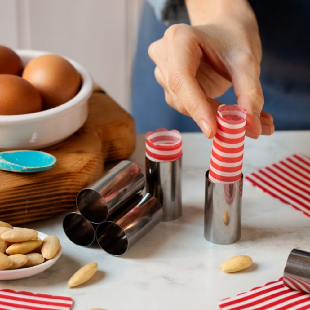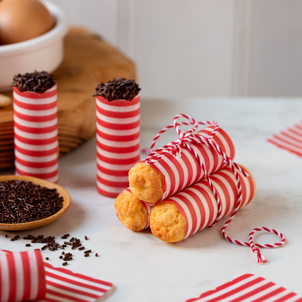 Papirčki iz papirja za peko na rdeče črtice, z valovitim robom, popolni za klasične italijanske cartucce “CARTU”.