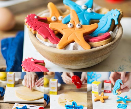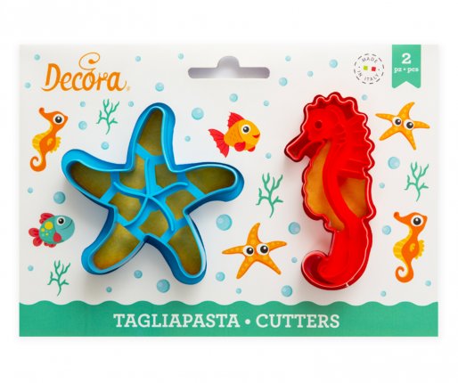 Komplet dveh modelčkov a piškote : morska zvezda in morski konjiček