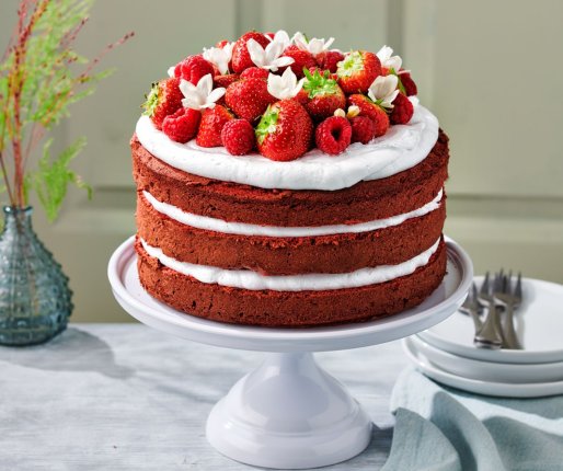 Prvotno v kombinaciji s prijetno glazuro iz kremnega sira, da ta rdeča barva še bolj izstopa.