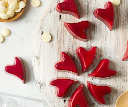 Profesionalni model iz polikarbonata, materiala, ki omogoča pridobivanje sijočih in popolnih čokolad. Pomembno je, da čokolado dobro temperiramo, preden jo vlijemo v model.