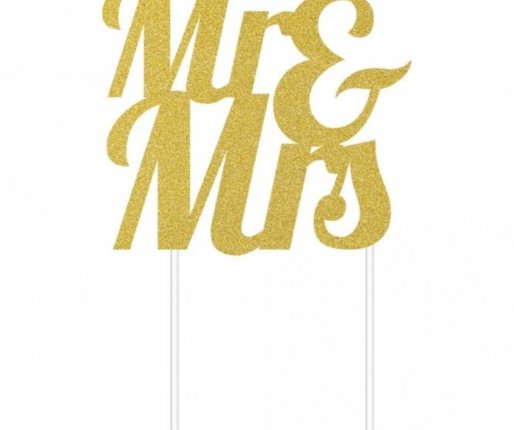 Ta zlat bleščeč napis Mr. &Mrs. - Cake Topper je prefinjena dekoracija, ki bo poskrbela za vašo poročno torto.