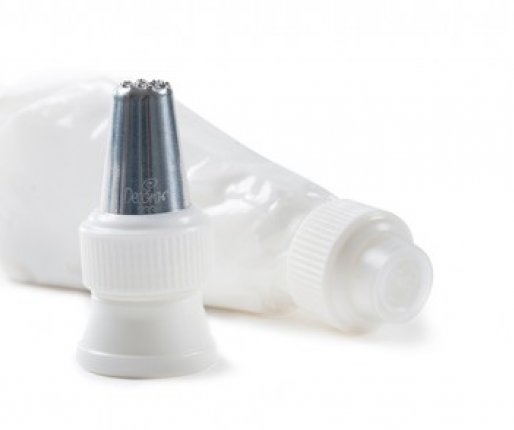 Adapter za standardne nastavke nam omogoča hitro menjavo nastavkov na dresirnih vrečkah za dekoracijo, brez praznjenja vrečke. Pokrovček, ki je del nastavka, nam omogoča, da nastavke menjamo ne da bi nam masa ušla iz vrečke in hkrati tudi vzdržuje higieno.