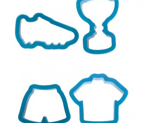 Set vsebuje 4 izsekovalce testa, ki predstavljajo različne oblike (pokal, dres (majčka, hlače) in športni copat).