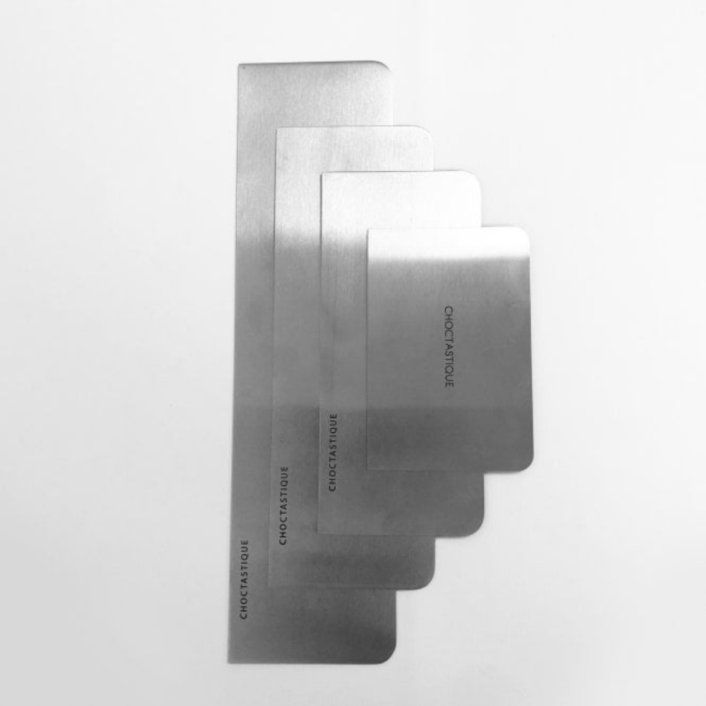Ustvarite ostre robove in brezhibne zaključke na tortah s strgali Choctastique iz nerjavečega jekla.