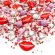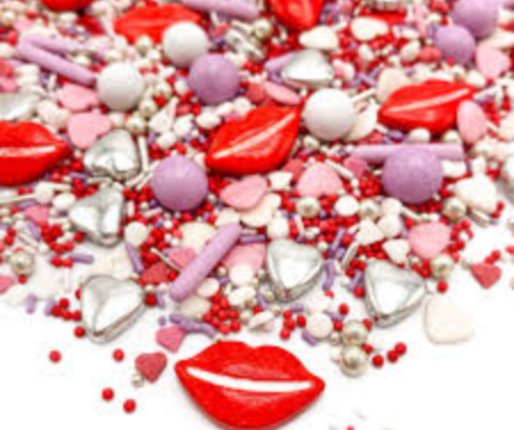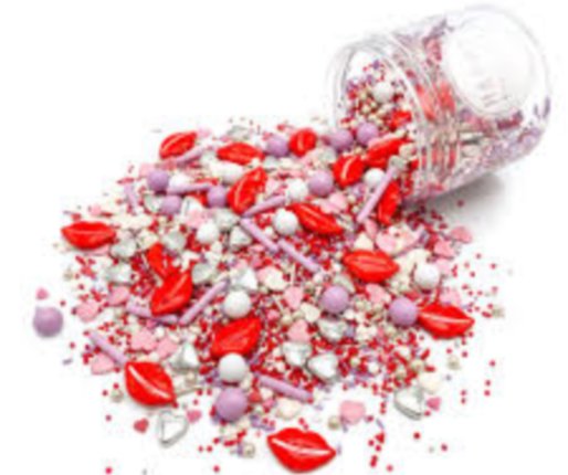 Sestavine: Sladkor, škrob (PŠENIČNI, koruzni, krompirjev, rižev), moka (PŠENIČNI, rižev), PŠENIČNI zdrob, rastlinska olja (sončnično, repično, popolnoma hidrogenirano ogrščično, kokosovo), glukozni sirup, dekstroza, maltodekstrin, polnomastno MLEKO v prahu, kakavovo maslo, kakavova masa, barvila (E120, E132, E160c, E162, E172, E174), jedilno barvilo (koncentrat jabolčnega, ribezovega, korenčkovega soka, redkvice, spiruline, limone), aroma, naravna aroma vanilije, premazno sredstvo (E901, E903, E904), zgoščevalec(E406, E414), emulgator (lecitin (sončnica, SOJA), E473), želatina (goveja), sredstvo proti strjevanju(E470b, E553b, E555).