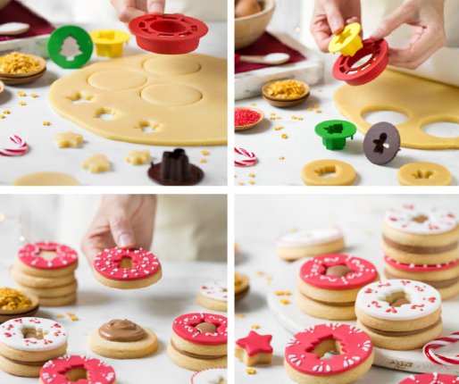 Klasični piškot postane z izsekovalci - modelčki "bull's eye" bolj zabaven , zanimiv, zelo lep in idealen za ustvarjanje piškotov na temo božiča.