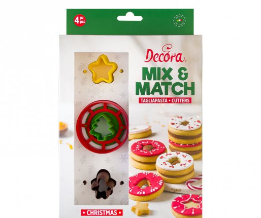 Set vsebuje 4 plastične rezalnike; kot nalašč za izdelavo piškotov iz sladkih, slanih, čokoladnih in modelirnih mas.