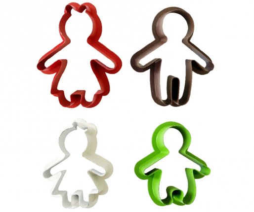 Set 4 plastičnih rezalnikov kot nalašč za izrezovanje silhuete družinskih likov v 2 različnih velikostih za okrasitev s sladkornimi kroglicami, čokolado, kraljevsko glazuro in sladkorno maso. Prav tako so kot nalašč za oblikovanje silhuet klasičnih medenjakov.