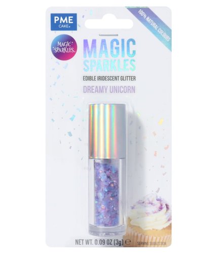 Navdušite svoje goste z lepoto in bleščicami ... Ščepec teh bleščic bo navadno pecivo spremenil v bleščeče sladice! PME Magic Sparkles so odlične za dodajanje bleščic kolačkom, piškotom, čokoladam in še več. Ta veganska užitna dekoracija, ki je na voljo v različnih razkošnih barvah, se ponaša s sijajem, podobnim dragulju, in je pripravljena širiti veselje ob vsaki priložnosti!