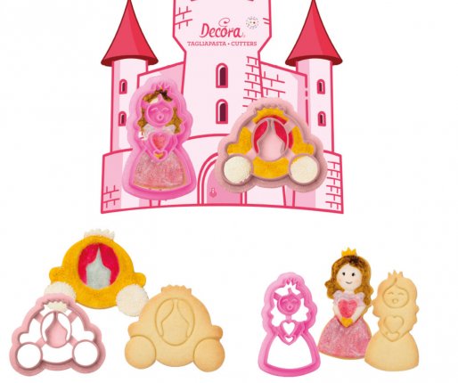 Plastični komplet modelčkov za piškotke, ki ga sestavljata kočija in princeska.
