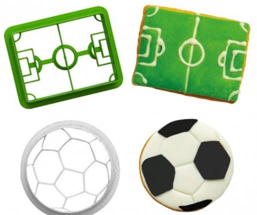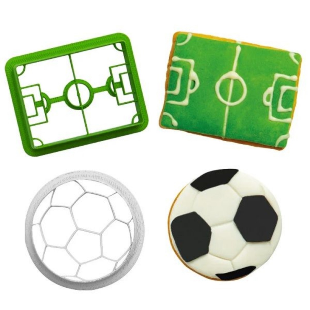Komplet dveh modelčkov za izrez nogometne žoge in igrišča.