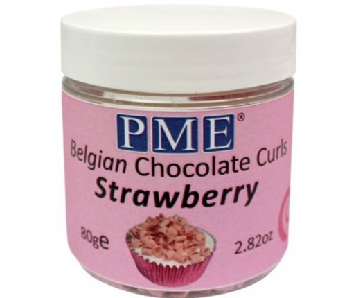 Ti čokoladni kodri iz PME, izdelani iz belgijske čokolade, imajo okusen jagodni okus.