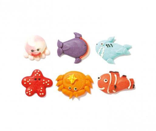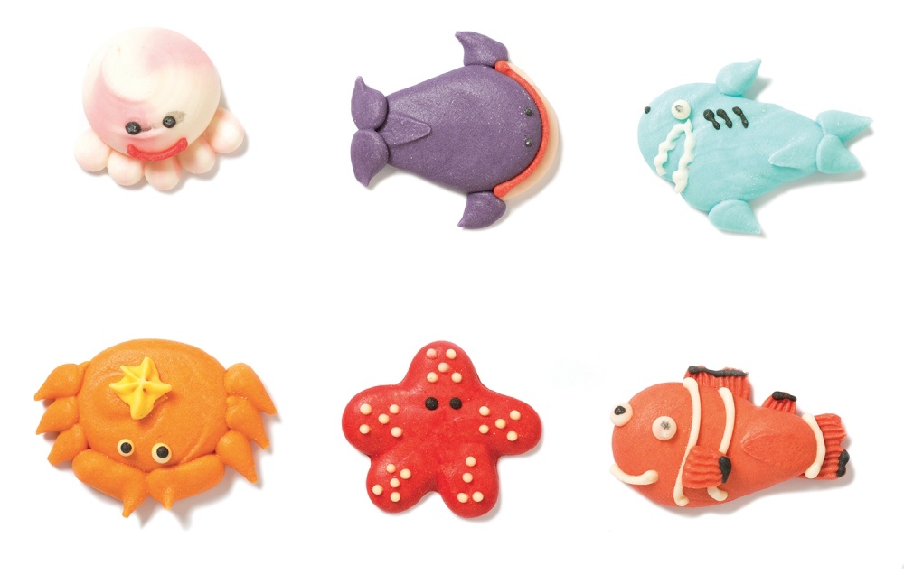 Morske živali iz sladkorja , ročno izdelane in z izvlečkom naravnih barvil.