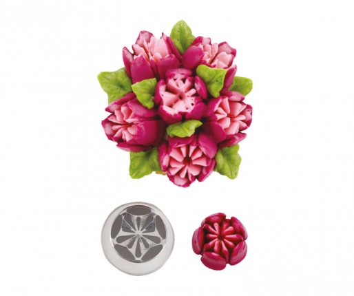 Iz nerjavečega jekla brez varilnih mest, kot nalašč za izdelavo cvetnih okraskov neposredno na tortah, kolačkih, piškotih in drugih sladkarijah z enim samim gibom direktno na pecivo.