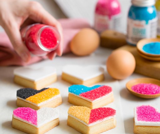 Bleščeč barvni sladkor je izredno fin, svetel in z intenzivnimi barvami.
