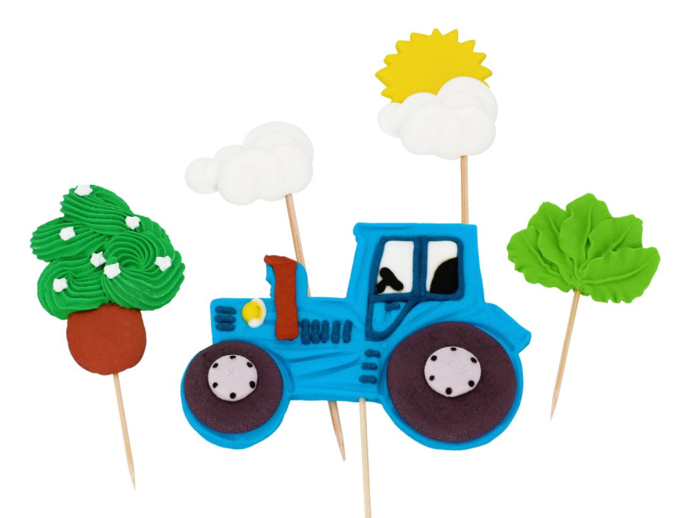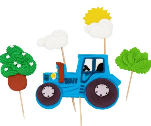 Sestavljen je iz 1 traktorja, 1 oblaka, 1 oblaka s soncem in 2 rastlin.
