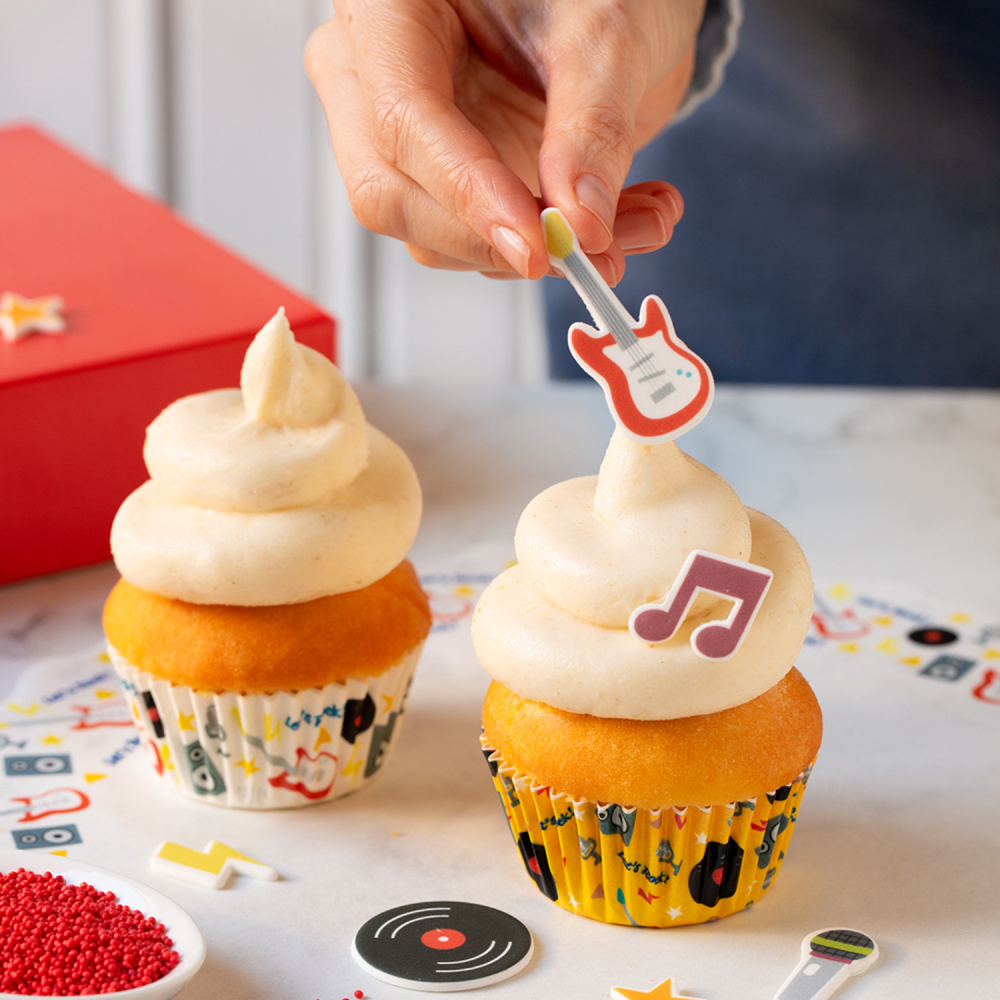Popestrite svoje muffine in cupcake z zabavnimi liki in motivi! Komplet vsebuje 9 dvodimenzionalnih sladkornih dekoracij velikosti od 1,5 do 3,5 cm (višina 2 do 5 cm), s katerimi lahko na enostaven in izviren način okrasite svoje sladice.
