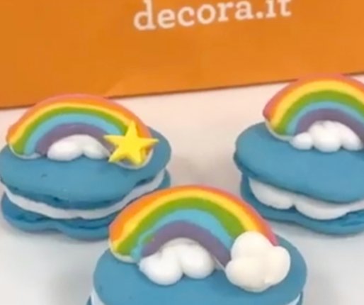Primer uporabe sladkorne dekoracije mavric na oblačku: Mavrice - macaroni